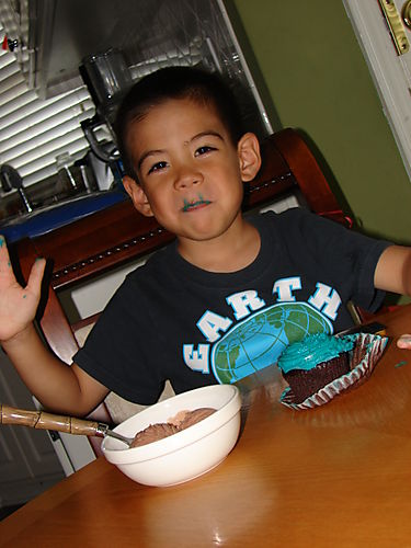 The boys enjoyed the cupcakes with D and we ended up going out for dinner later at Red Robin with D’s mom and brother.  I made it a point to let our server secretly in on the fact that we were celebrating D’s birthday so they managed to come over and make a big deal about it and gave him a free sundae!  The kids really enjoyed that part!