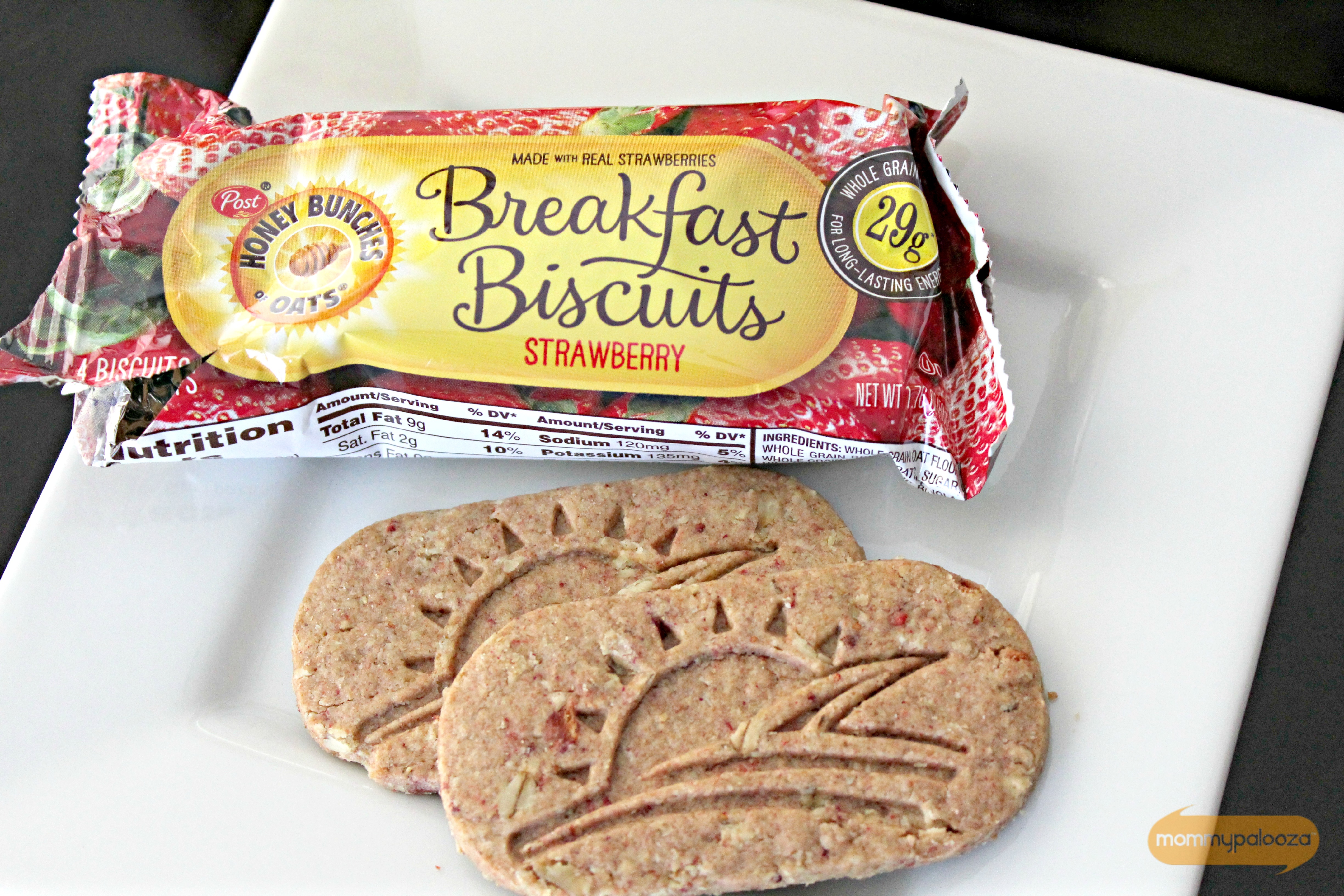 So, yes, my fave variety are the Strawberry Honey Bunches of Oats Breakfast Biscuits. They're made with 100% whole grain, and 5 grams of protein per serving, so they'll provide long-lasting energy no matter where your busy mornings may take you. I love the convenience factor, too. The convenient pouches of four crunchy biscuits makes them the ideal on-the-go breakfast.