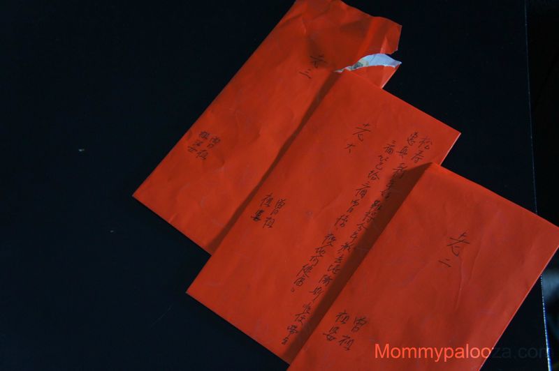 I know how silly it is that I will actually keep their red envelopes but I just LOVE having that treasured writing on them that was put their by my mother-in-law.  I know it will be fun to look back at once the boys are older.  I think I may have saved a few of the red envelopes that even the hubs and I received before we had kids.  The hubs can't read or write Chinese but I simply just love the idea of my boys having these in their little-boy-books to look back one one day.