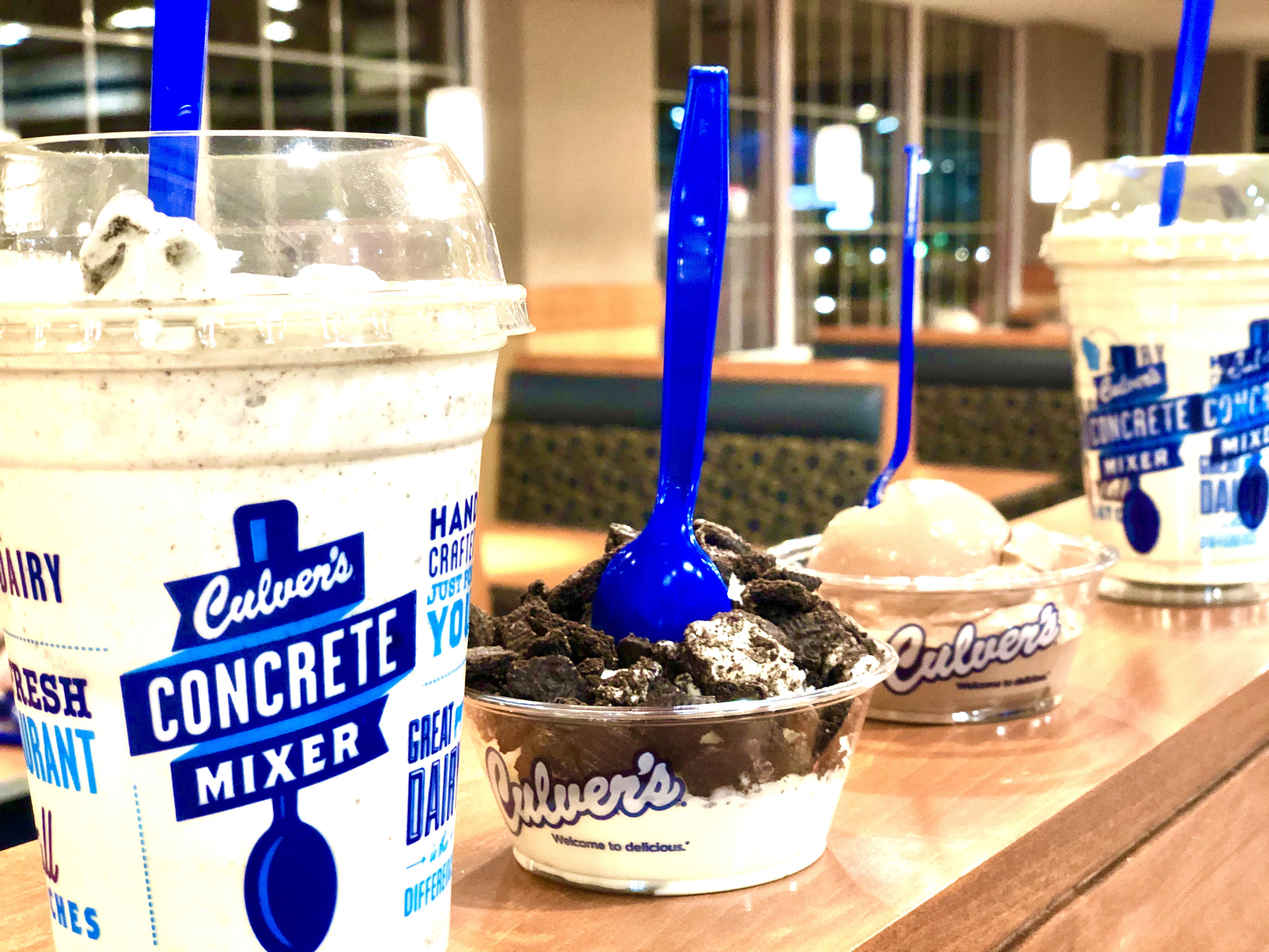 My favorite Concrete Mixer from Culver's is made with fresh vanilla frozen custard and fresh strawberries and brownie bites. Who can resist such a tasty treat – any time of year?! Of course, my kids love the scoops of fresh frozen custard – in both chocolate and vanilla – all with their favorite toppings! Choosing just one is really the hardest decision of the entire day!