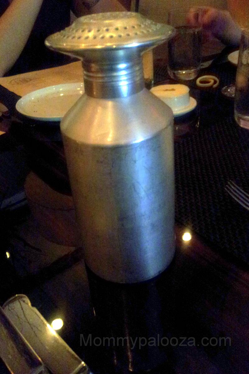 Yeah, that's roasted sea salt there in that funny looking container. Let me tell you — I totally wish I would've snapped a photo of the popover when I'd opened it up and buttered it and sprinkled the salt because it was DELISH! I think I ate it so fast and by the time it occured to me to snap a photo of it, it was too late!