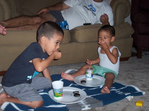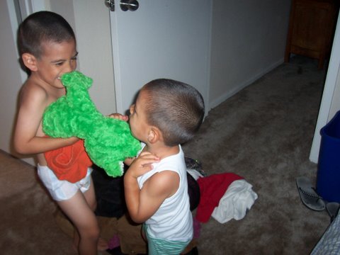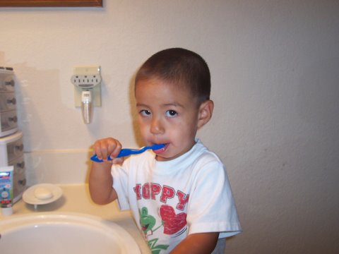 So the babes are having fun creating wonderful memories with their Grammy & Popo in Texas, but they're also remembering to brush their teeth! I miss them so much, but these make me smile! (Thanks for the pics, mom!)