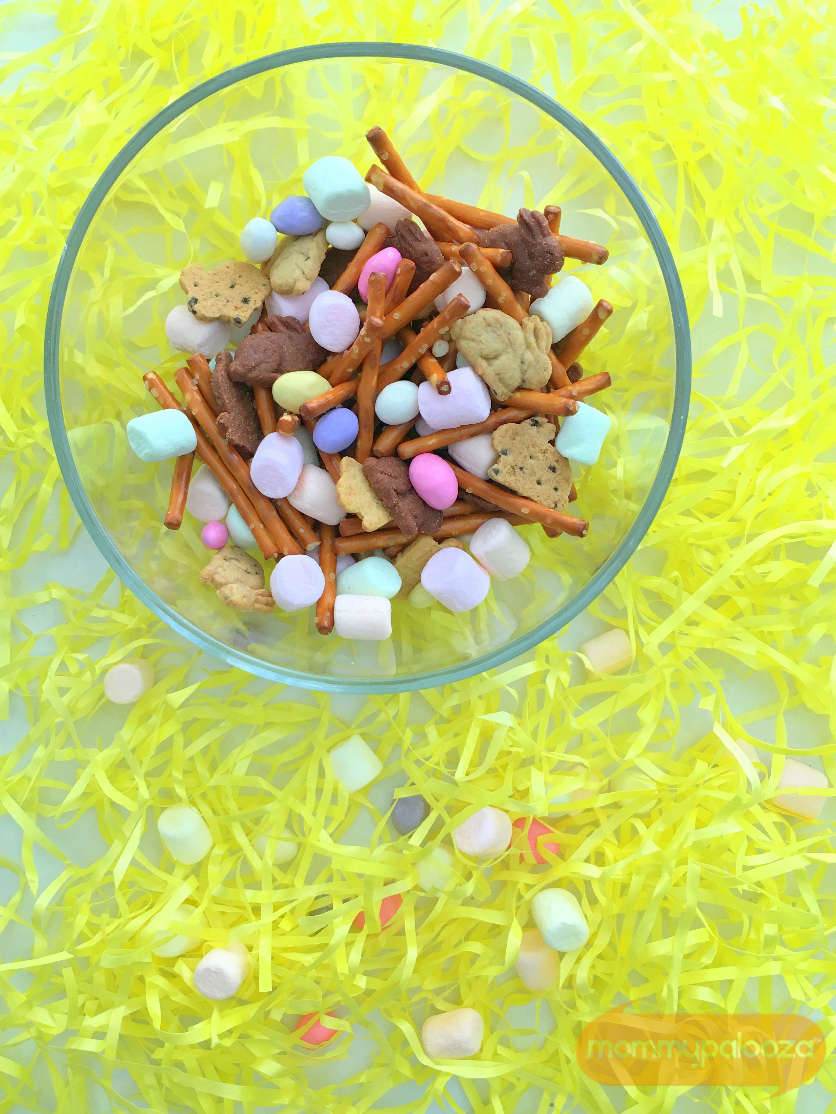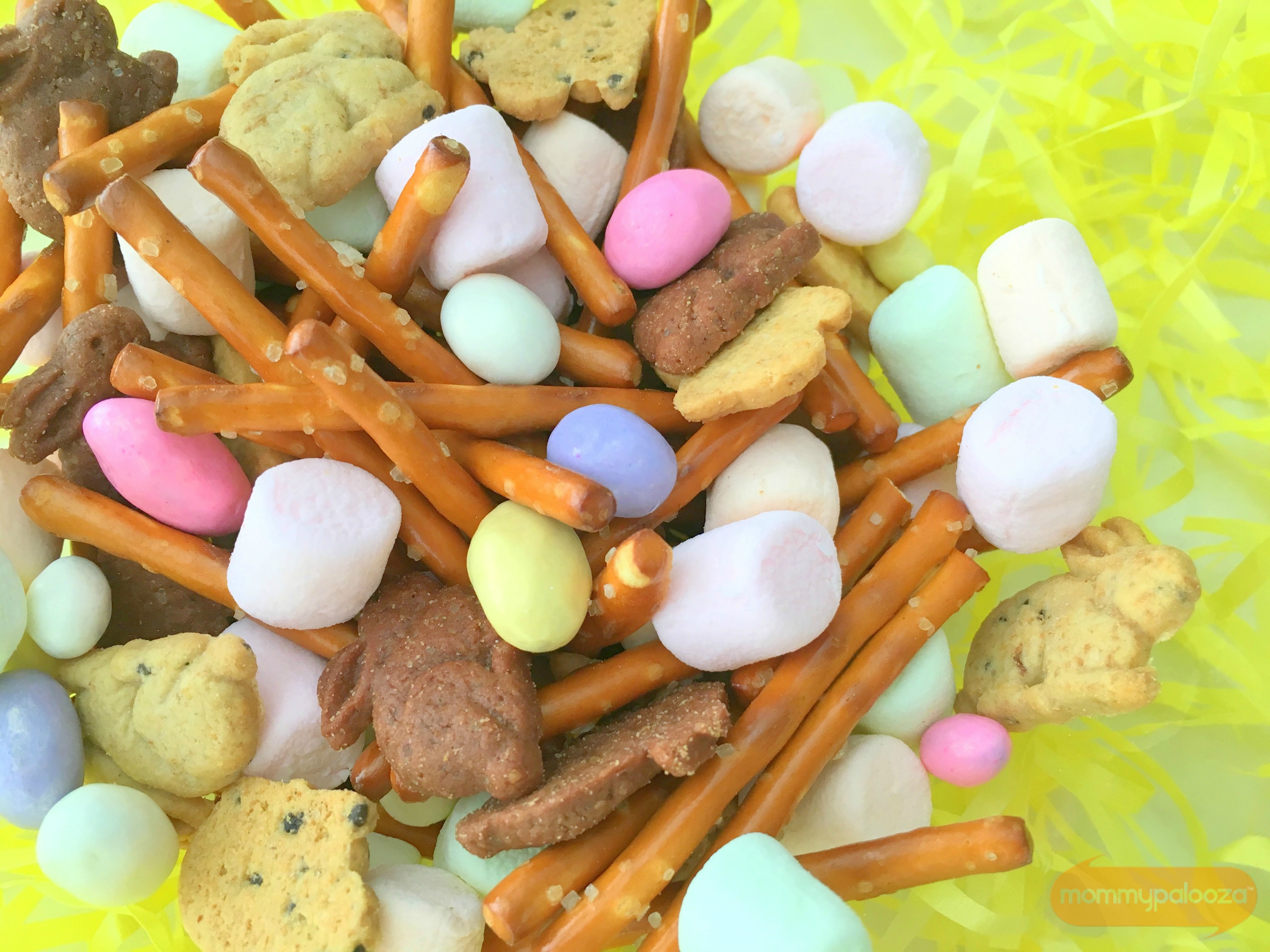 This is seriously the cutest and easiest snack mix idea to welcome the spring and Easter season! You could even add your own kids’ special favorites, like chocolate chips, dried fruit, or nuts. It is a great after school snack to have on hand and is simple enough that the kids can help throw it together.