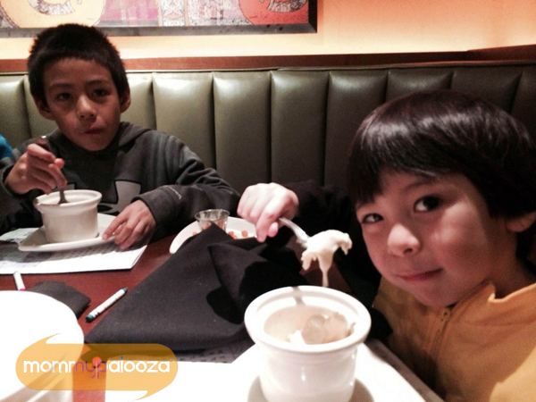 And as if amazingly good menu options weren’t enough, the kids were SO excited when our server announced they’d be getting ice cream! Yeah, who cares if it’s 30 degrees outside – they were getting ice cream! On a school night! What’s not to love?