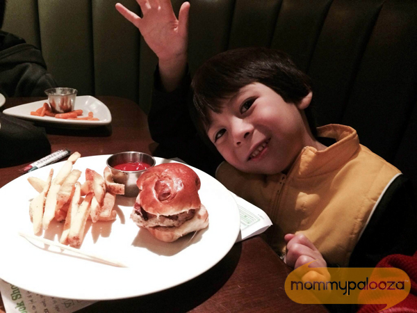 After their nice little appetizer, each of the kids sunk their teeth into a delicious dish as well.  Jacob loved his grilled chicken sandwich and side of fries. And I should know that it was full of flavor since I tasted just for kicks.
