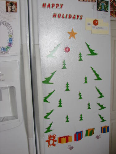 Then it was time to put out our new Advent tree calendar I purchased the other day from my new favorite department store. The kids love the magnet feature of the calendar and each day they'll switch off putting up the day's number!