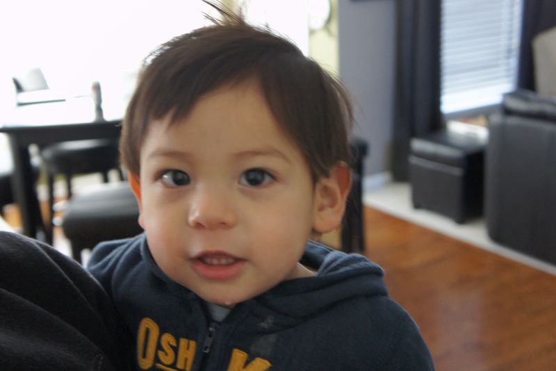 Well, it's turning out to be a very sleepless new year for me. Jacob has croup. It all started on Friday when he started with a runny nose. I didn't think anything of it but apparently it's gone viral and has been keeping us up the past two nights. Saturday night he had a wild coughing spell so I brought him into bed with me and propped him up as best as I could. He still coughed quite a bit and even ended up coughing himself into vomiting. Ew, I know.