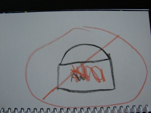 Nathan drew this a couple of days ago when he overheard David and I discussing grilling for dinner. We later asked him to explain to us what the drawing was and he retorted, "NO MORE GRILLING!" ♥