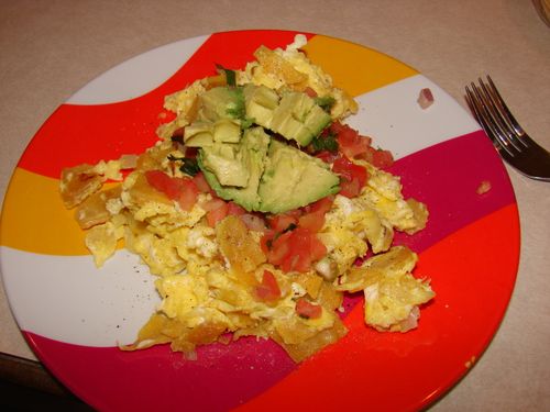 My appetite, that is. Don’t get me wrong, I am still getting the occasional nausea spells but it’s getting better. Since last week I’ve had a grand craving for homemade migas. This past week while grocery shopping I made sure to pick up all of the necessary stuff to make ’em tasty. This morning, I nearly jumped out of bed remembering it was my migas morning.