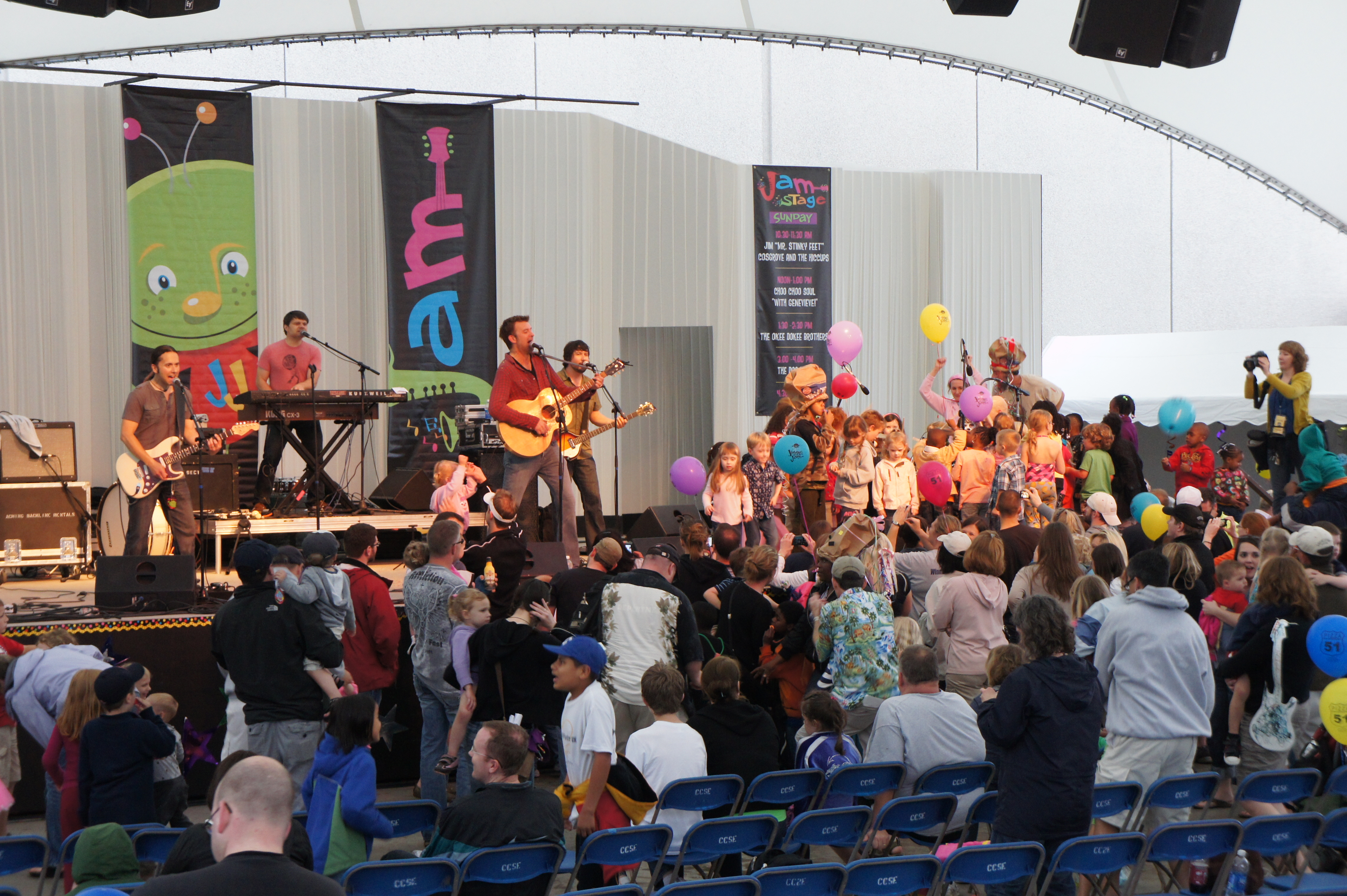 I {humbly} serve on the Board for the festival and we were able to make a staycation out of the weekend and stayed on-site at a hotel for the weekend to enjoy the festivities! The kids were so excited to see and hear all their favorite local kid rockers like Jim Cosgrove, Funky Mama, Dinosaur O'Dell & The T-Rex Allstars, and new on the KC scene — Rockin' Rob! Equally as impressive, however, were the great national acts that Jiggle Jam has become known for — pretty much the reason it's considered to be the largest independent family music festival in the country!