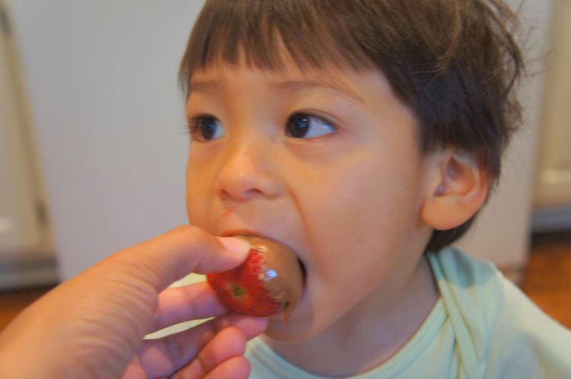 I could totally see using bananas, pineapples, raspberries, or any other edible item you happen to have on hand to drench in this Nutella fruit dip. My taste tester tends to agree.