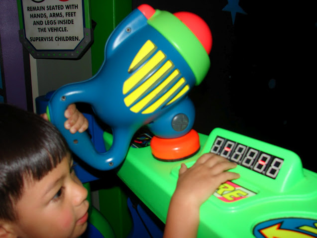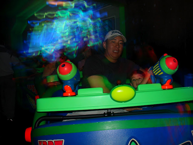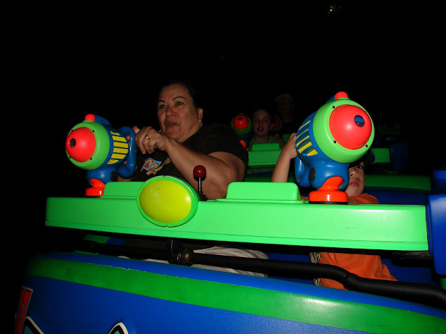 Yep, you got it — Buzz Lightyear’s Space Ranger Spin! This is my mom pictured with my oldest, Nathan, back in 2007 — our first Disney family trip. Neither of us could get enough of the Buzz Lightyear ride!!