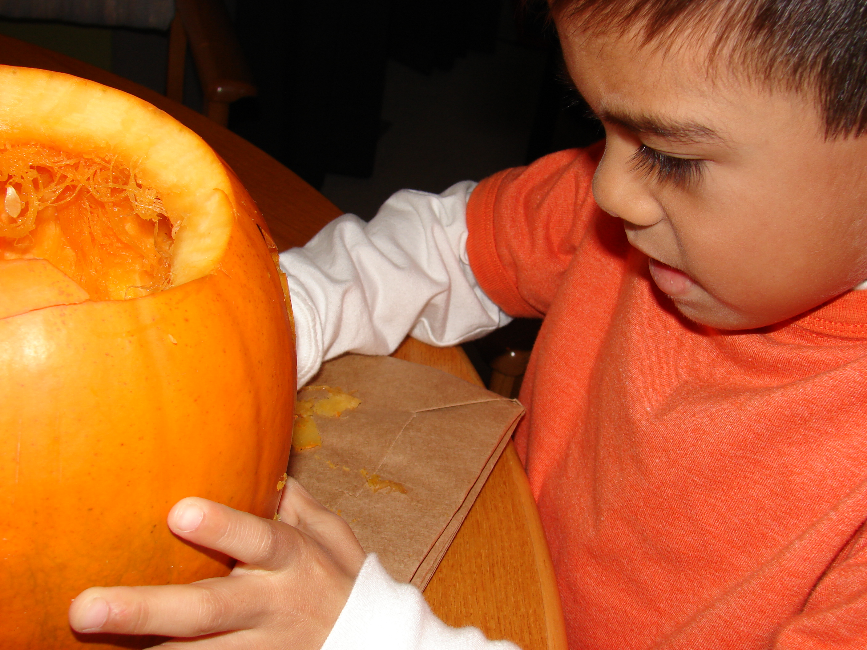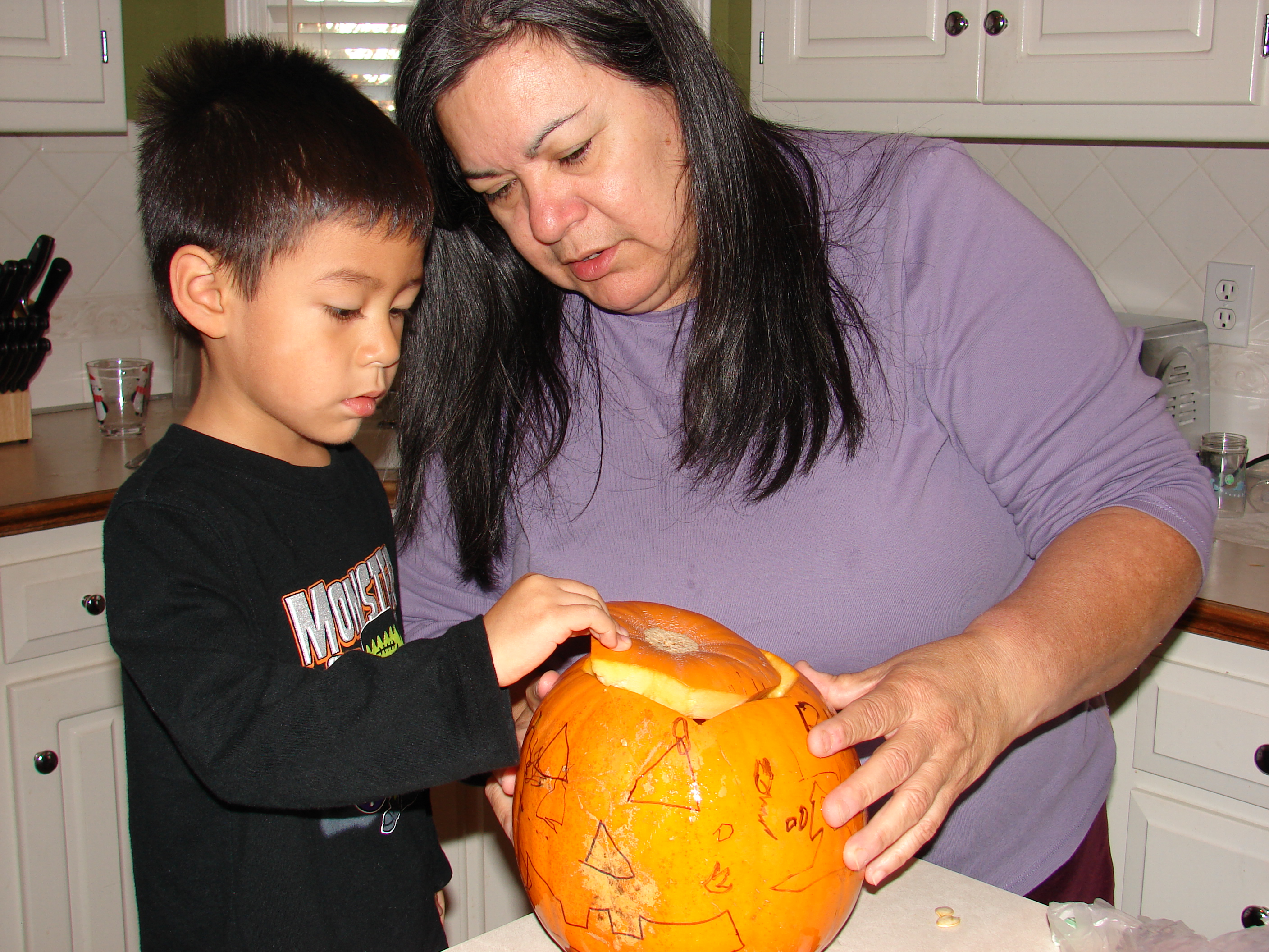 Pumpkin carving was of course in order as well. The boys enjoyed drawing their faces on while Grammy & I helped with carving.