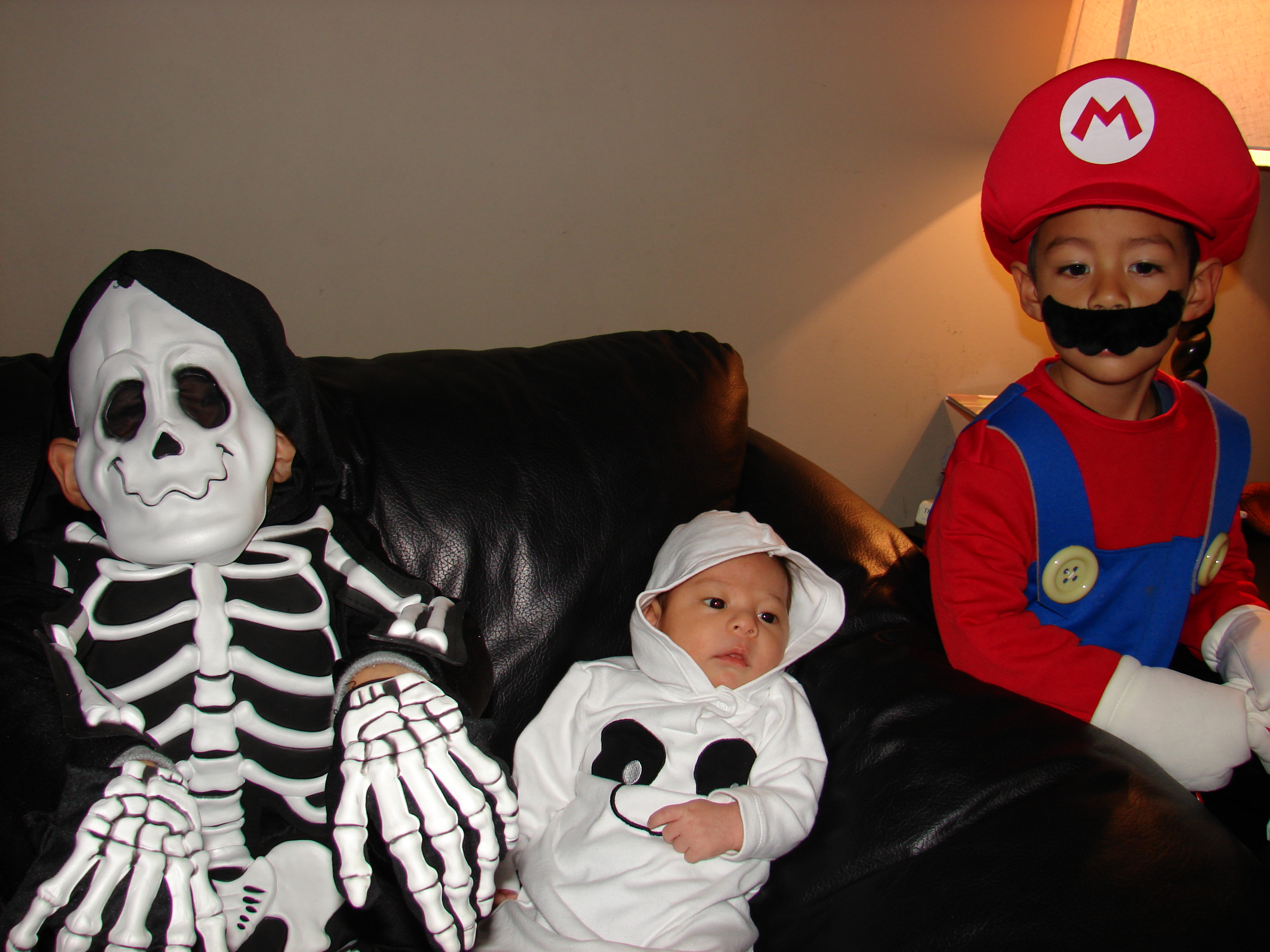 Then, it was time for the goblins to come out! My skeleton boy, Super Mario, and Boo! The Baby Ghost were ready for trick-or-treating! Ok, in all honesty, Jacob didn't actually go out….he got tricked and got to stay home with Grammy – the Witch!