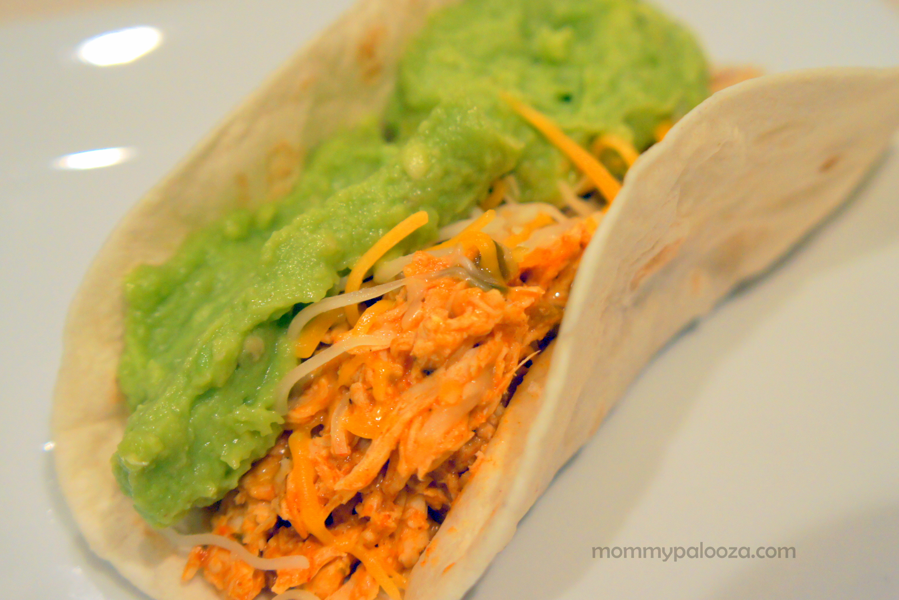 • Place chicken mixture into tortillas and top with shredded cheese and guacamole and serve.