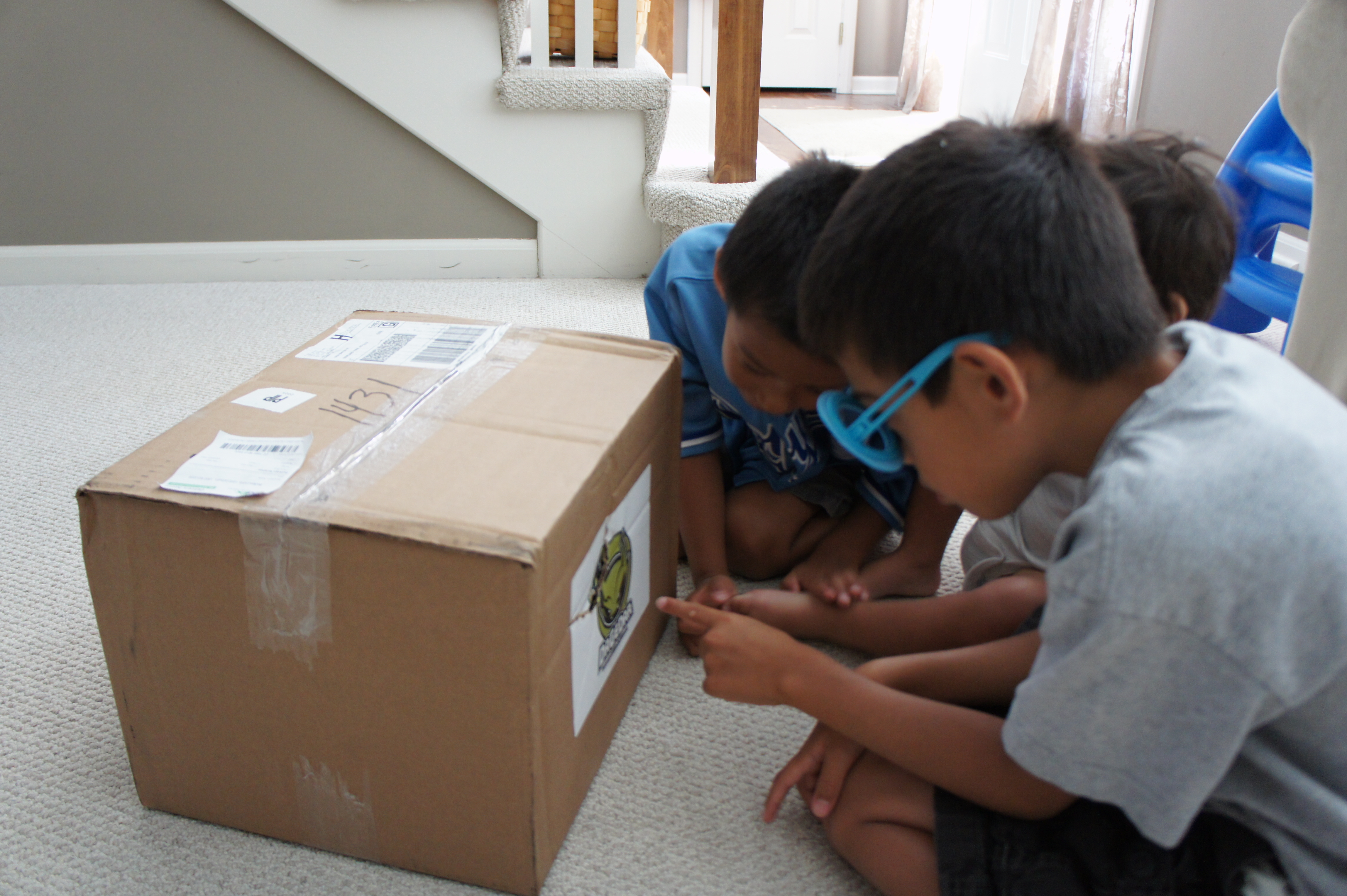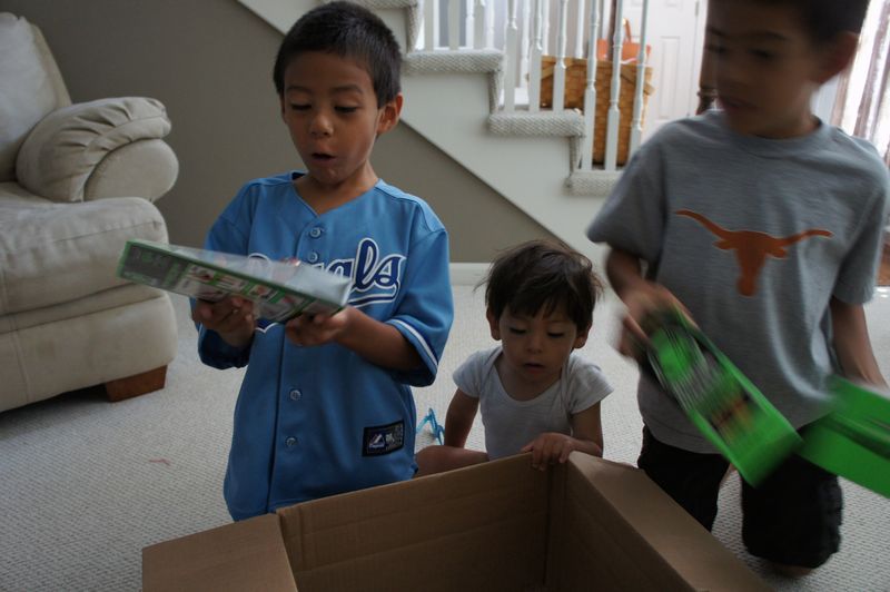 Alas, the box is penetrated! {I find it incredibly adorable at how excited boys get over their toys!}