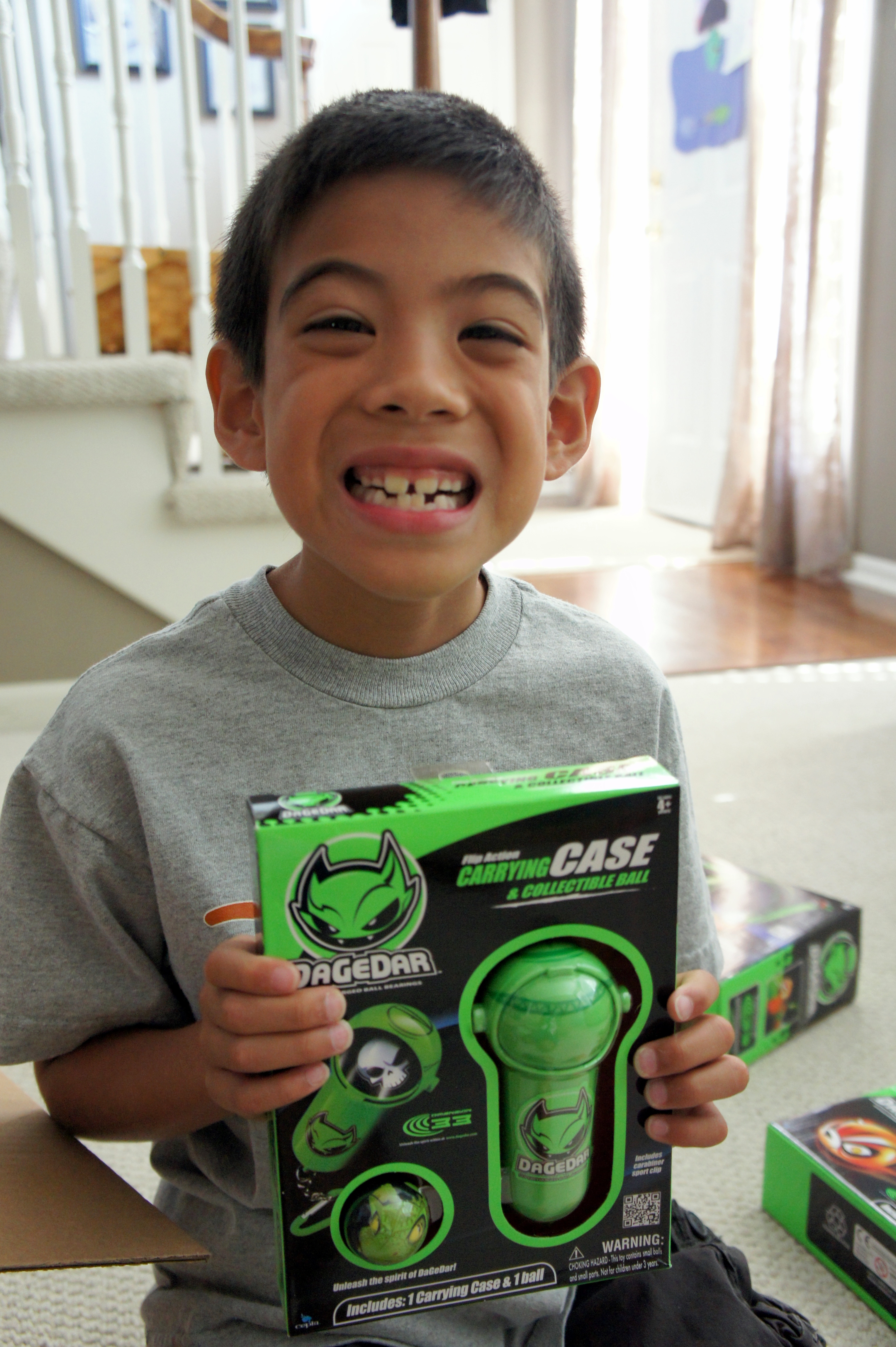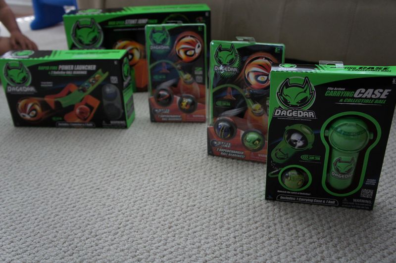 My boys were so excited to try out the VERY cool new DaGeDar collection, which is scheduled to be released in 2012. As you can tell, just getting goodies in a box was half the fun.