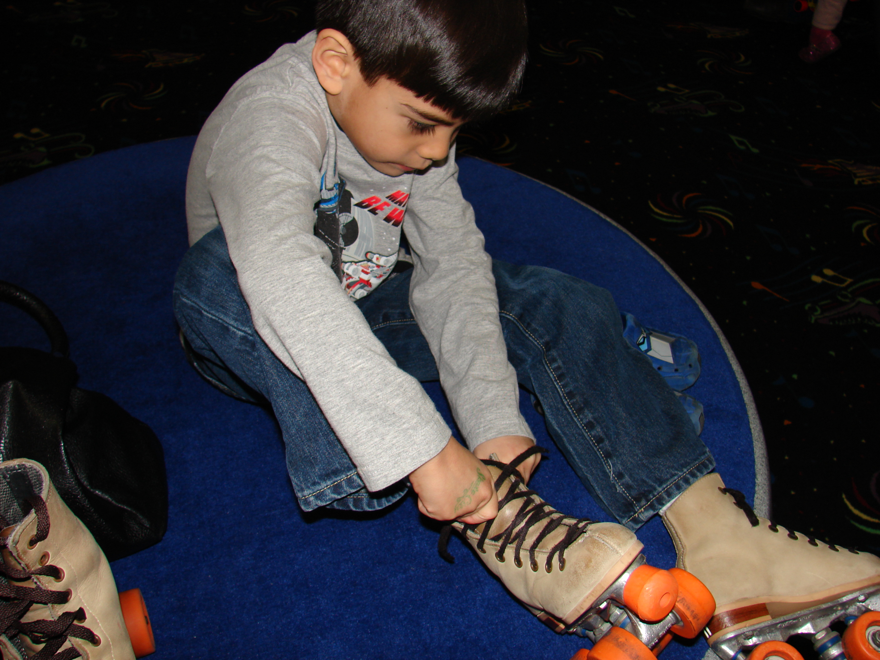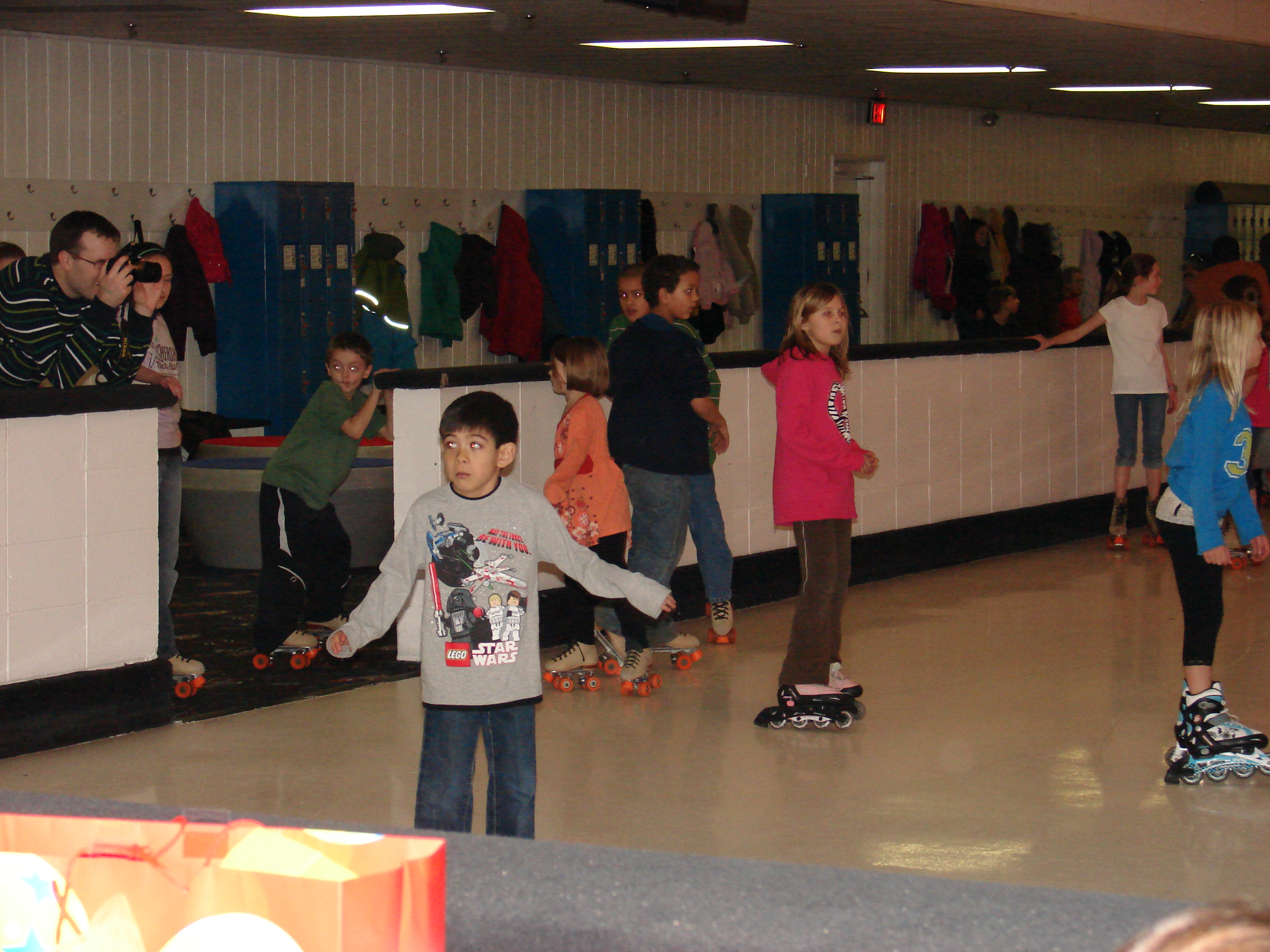 Today I accompanied Nathan to his very first roller skating experience.  It was a special party organized by his violin instructor for all of the students as a reward for them having succeeded in a listening challenge during the Fall.  I thought that Nathan might be a little apprehensive about trying this new activity, but I was wrong.  I am convinced I was more scared than he was.  I don't think I've roller skated since about the eighth grade!  And I'm 34 years old (almost 35) so that was a LONG time ago, people!