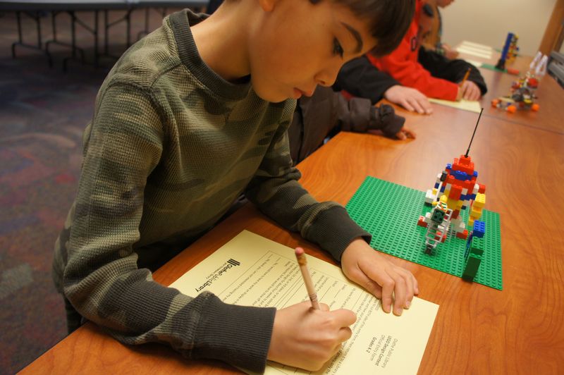 Today my 7 year-old punkin' participated in a local Lego building competition hosted by our local library. He'd signed up earlier this month and was so excited the day had finally come! This morning I remember him saying, "I hope I win something!". I quickly replied to him that while that would be a fun treat, the reason for this event was to showcase all of the kids' hard work while getting inspiration for new Lego creations. Of course it probably went in one ear and out the other.