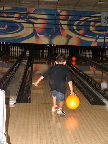 Will, my youngest, of course LOVES bowling more than life itself and was beyond ecstatic when I announced that we were going to a real, LIVE bowling alley!  All in all, a very good use of six bucks for a fun-filled activity.  I'm sharing a couple of my favorite pics from our outing, but feel free to check out the other photos