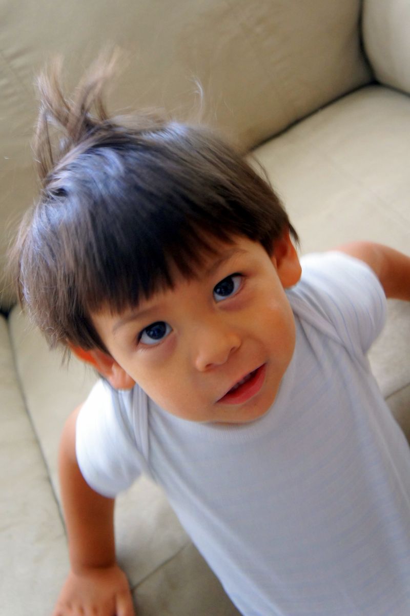 It's one of his best assets. And who could argue, really? I love waking up to this happy little guy each morning! I've given him a couple of haircuts in the past few months but just can't let myself chop his hair off! I just LOOOOVE it!