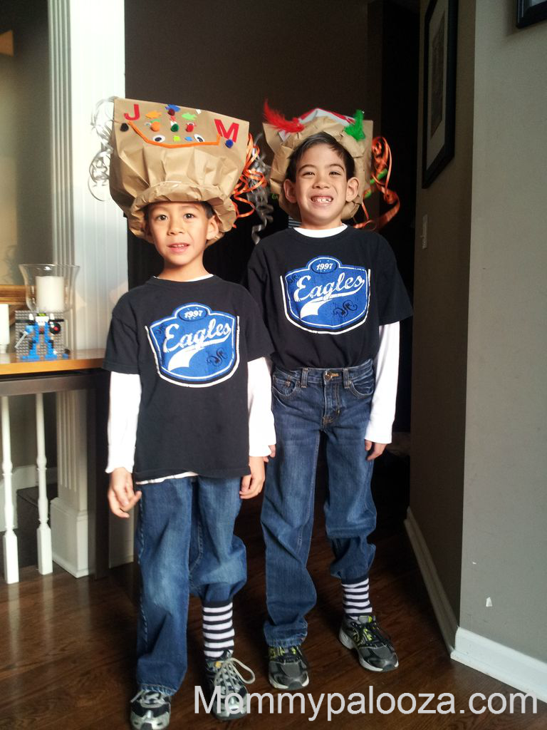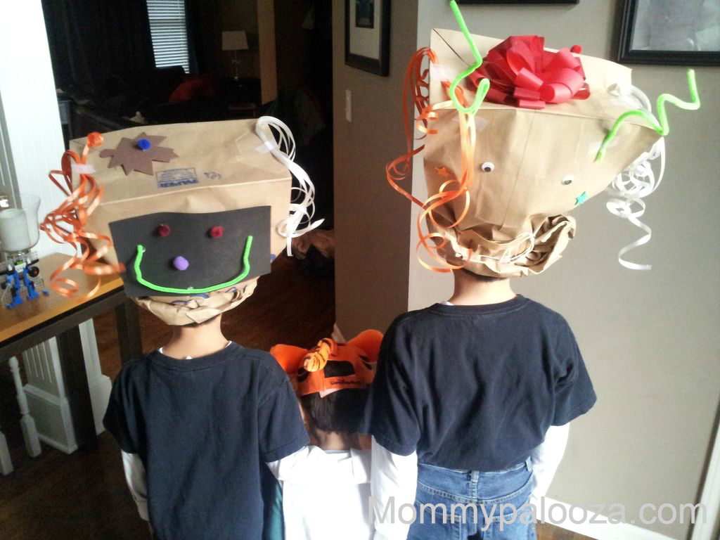 And of course my little one had to get in there with his cute Tigger hat! Monkey see, monkey do. The kids even decorated the backs of the wacky bag hats like this: