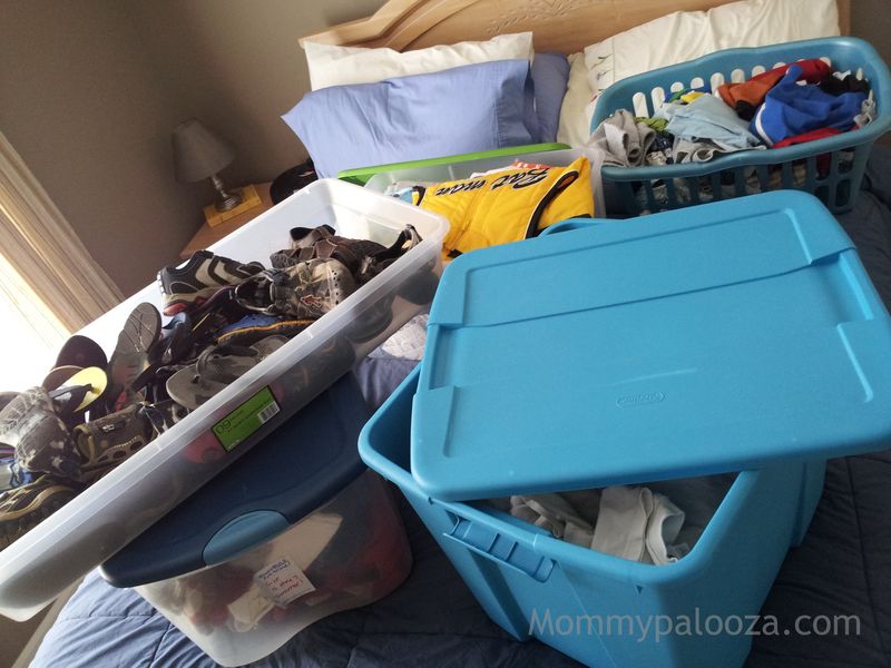 Yep, you got that right.  It's time to break out the bins.  Boys' clothes a'plenty in this house.  Thankfully I took the time a few seasons ago to purchase enough bins to hold each individual size of clothing so that I know exactly what bin to go to each season.  I must say, I can't even IMAGINE having to sort and store clothing by sex and size, so I am abundantly grateful for having ALL boys!!  It makes this transition so much easier!