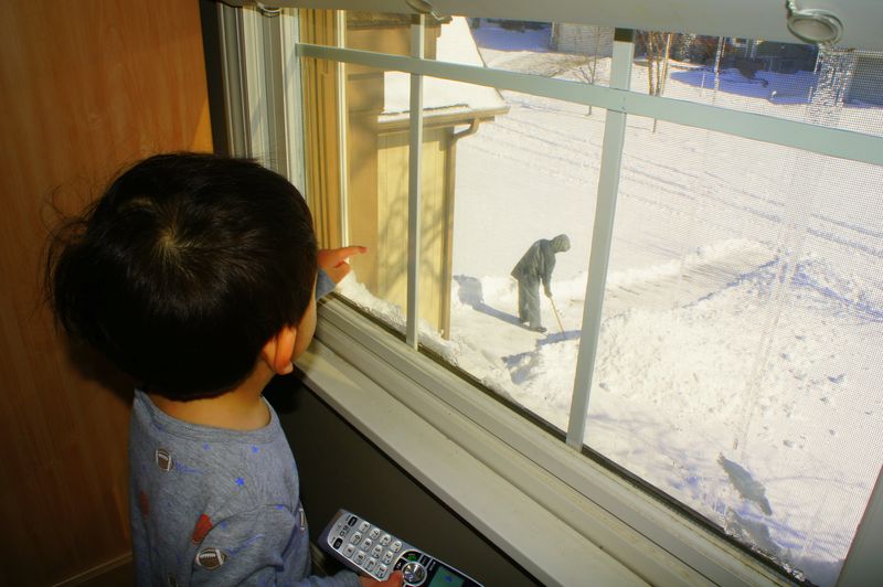 Jacob watching as David begins the three hour shoveling marathon!  I don't know how people even buy non-4-wheel drive vehicles living in a climate like this! I can't imagine life without a 4×4!