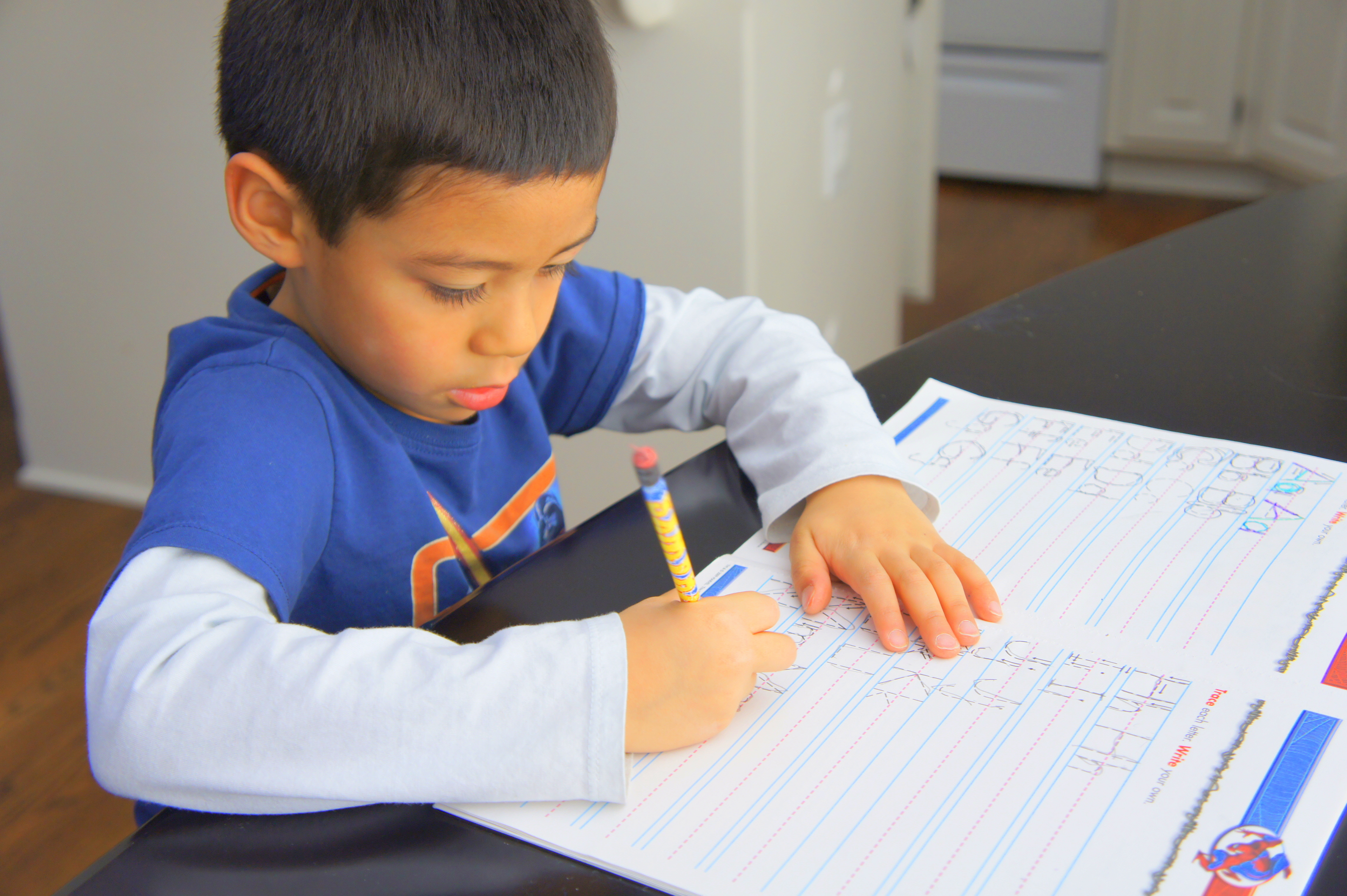 William practicing handwriting.  We're still working on lowercase "a" because he seems to only want to write that letter in capitals!