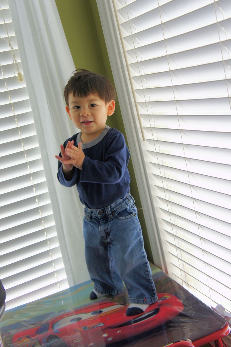 And my baby has found  a way to follow in his big brothers' footsteps on his way to becoming a big boy, himself.  Climbing tables has become the norm around here.   And yes, he's applauding himself.