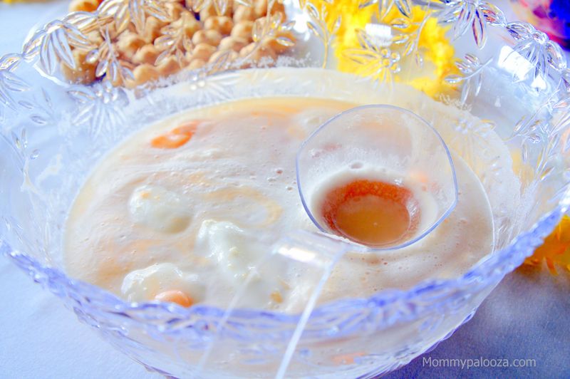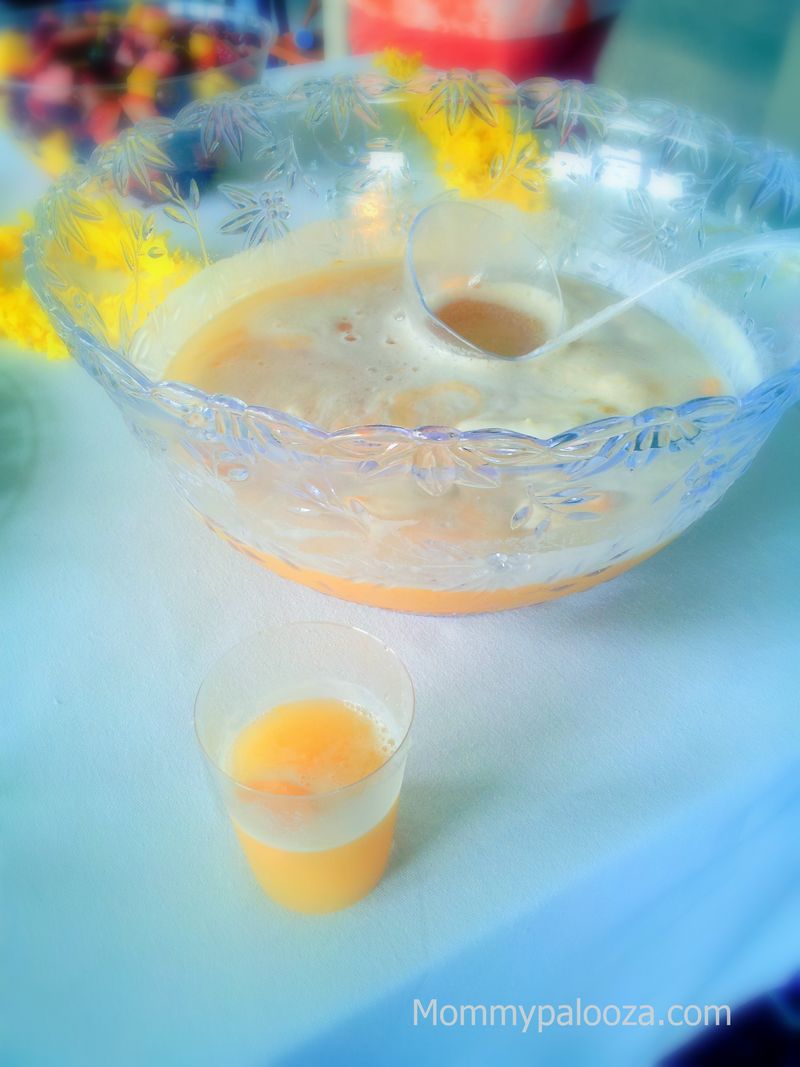 Earlier this month my mom and I threw my sister a baby shower and I received a punch recipe from a friend of mine that she thought would be perfect to serve to guests.  It sounded yummy so when the time came to buy the ingredients, I referred back to the recipe.  In my usual fashion, I ended up making a variation of the actual recipe she sent me, mostly because  I was too lazy to buy orange juice and pineapple juice and instead bought the orange-pineapple juice to save myself a step {and a couple of bucks}.